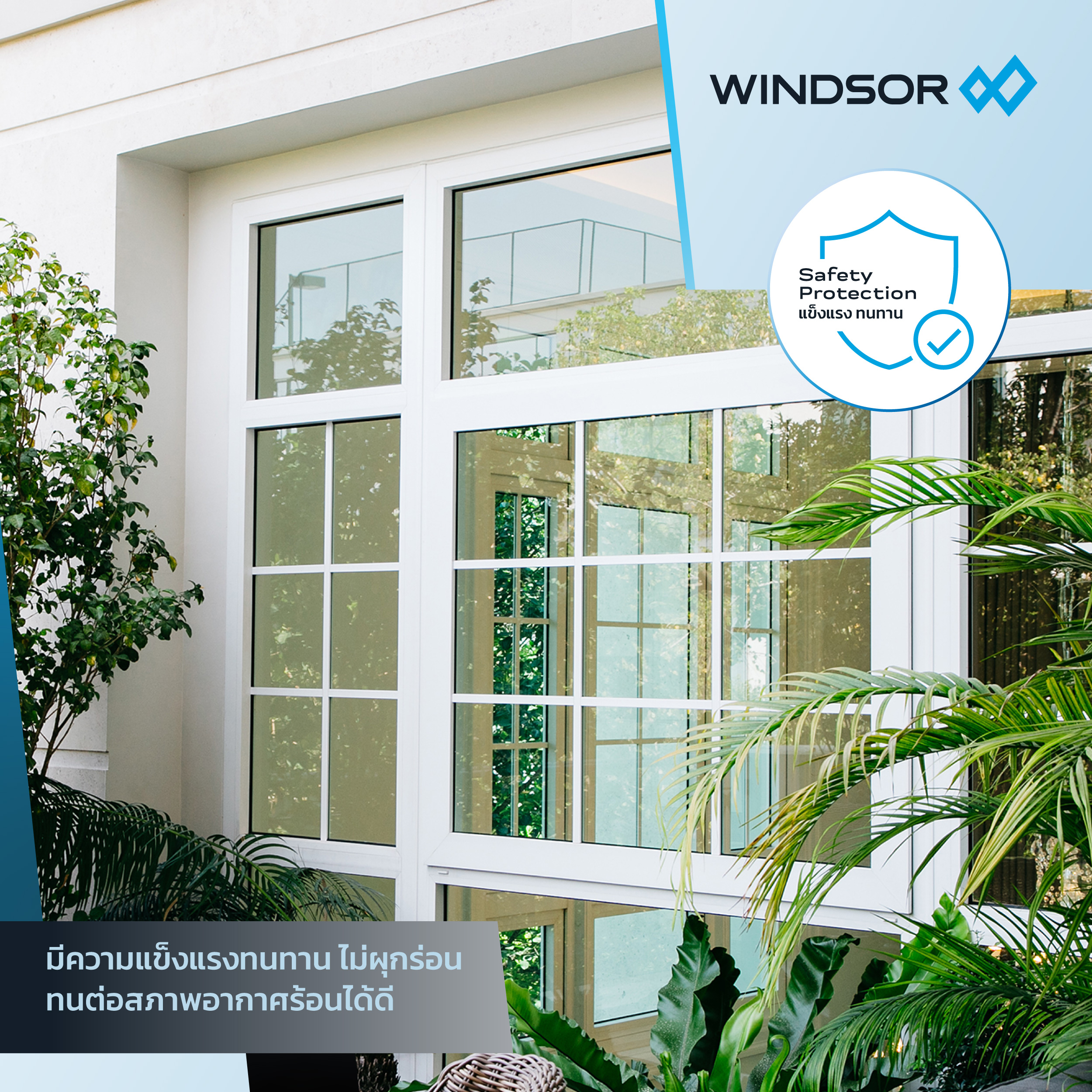 ด้วยคุณสมบัติเหล่านี้ทำให้ประตูหน้าต่างไวนิลของวินด์เซอร์ (WINDSOR) สามารถป้องกันความร้อนได้ดี จึงเป็นผลิตภัณฑ์ที่เหมาะจะเป็นทางเลือก สำหรับเจ้าของบ้านที่ต้องการลดความร้อนให้บ้าน และเปลี่ยนจากบ้านร้อนกลายเป็นบ้านที่เย็นอย่างเป็นธรรมชาติ โดยเริ่มจากการปรับแก้จากจุดเล็ก ๆ ที่หลายคนอาจมองข้ามอย่างประตูหน้าต่าง