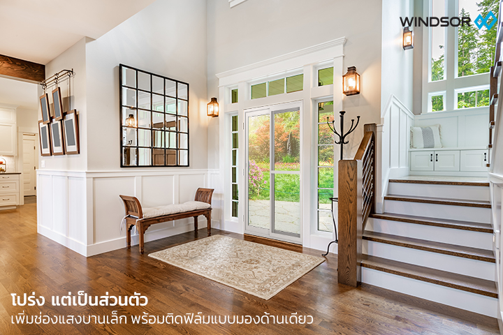 การเพิ่มช่องแสงบานเล็กหลาย ๆ บาน จะช่วยให้มองเห็นบรรยากาศนอกบ้านได้มากขึ้นโดยไม่ต้องเปิดประตู และสามารถมองเห็นแขกด้านนอกได้โดยไม่ต้องส่องตาแมว ช่วยให้บ้านดูโปร่ง และปลอดภัยมากขึ้น เหมาะสำหรับคุณผู้หญิง หรือบ้านที่ต้องอาศัยอยู่คนเดียว โดยสามารถเพิ่มความเป็นส่วนตัวด้วยการติดฟิล์มกระจกแบบมองเห็นได้เพียงด้านเดียว เพื่อไม่ให้คนด้านนอกมองเห็นด้านในตัวบ้าน ช่วยให้บ้านสว่างและเป็นส่วนตัวได้ในเวลาเดียวกัน