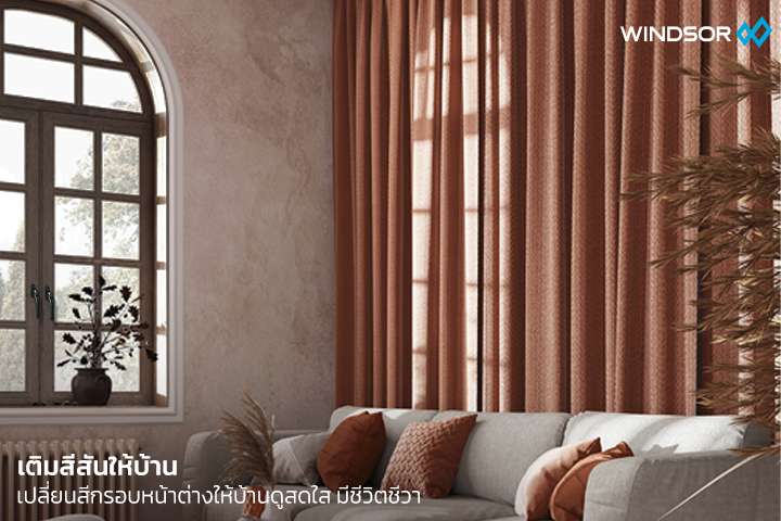 เปลี่ยนสีกรอบบานประตู หน้าต่างที่ดูธรรมดา เรียบง่าย ให้ดูมีดีเทล ผิวสัมผัสและสีสันที่โดดเด่นมากขึ้น เช่น กรอบบานลายไม้ ที่เหมาะกับบ้านสไตล์มินิมอล หรือบ้านที่ต้องการบรรยากาศอบอุ่น ใกล้ชิดธรรมชาติ เป็นอีกหนึ่งเทรนด์สีที่กำลังมาแรง และอาจเพิ่มความกลมกลืนด้วยการเปลี่ยนสีผนังห้องเป็นสีโทนอุ่น หรือเอิร์ธโทน (Earth Tone) จะช่วยให้บรรยากาศในบ้านดูผ่อนคลาย สบายตาสบายใจ โดยอาจใช้สีหลักของห้องเป็นสีเบจ สีน้ำตาล สีขาว สีดำ สีเหล่านี้ล้วนแล้วแต่ได้รับแรงบันดาลใจมาจากธรรมชาติเป็นหลัก ทั้งนี้อาจสามารถเพิ่มความสดชื่นแบบเป็นธรรมชาติด้วยการใช้สีเขียวจากต้นไม้ในร่วมมาประดับประดาตามจุดต่าง ๆ ของมุมห้อง ก็จะช่วยให้เรารู้สึกผ่อนคลายเหมือนอยู่ท่ามกลางธรรมชาติได้ง่าย ๆ