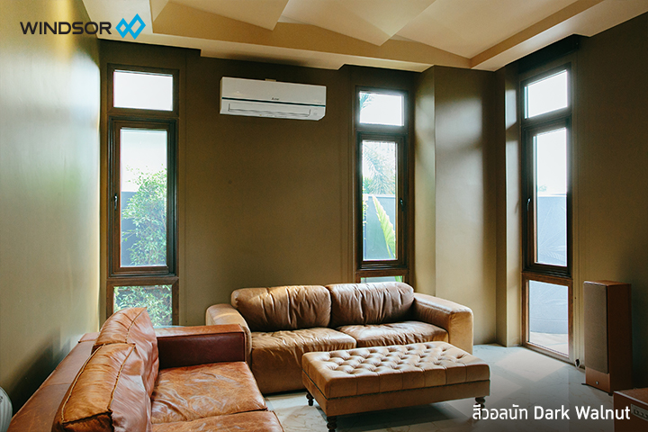 สีไม้โทนเข้มของวินด์เซอร์ ที่ให้ความรู้สึกหนักแน่น เรียบเท่มากขึ้น กรอบบานประตูหน้าต่างโทนสีนี้เหมาะกับการแต่งบ้านสไตล์ทรอปิคอล (Tropical) ที่เน้นใช้โทนสีธรรมชาติอย่างสีเขียว สีน้ำตาล สีเบจ ในการสร้างความมีชีวิตชีวาให้กับบ้าน และอาศัยการออกแบบสเปซภายในบ้านให้มีความโปร่งโล่ง โอ่โถง เพื่อให้อากาศถ่ายเทได้ดี ซึ่งประตูหน้าต่างไวนิลรุ่น Signature สีวอลนัทสามารถดีไซน์เป็นบานขนาดใหญ่พิเศษได้สูงสุดถึง 3 เมตร จึงตอบโจทย์การออกแบบบ้านสไตล์ทรอปิคอลทั้งในแง่สีสันและความปลอดโปร่งได้เป็นอย่างดี